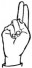 На ћирилици написано РУЖИЦА ШЕВО састоји се из 10 слова [?]. Исписано ћириличном једноручном азбуком за глувонеме:
